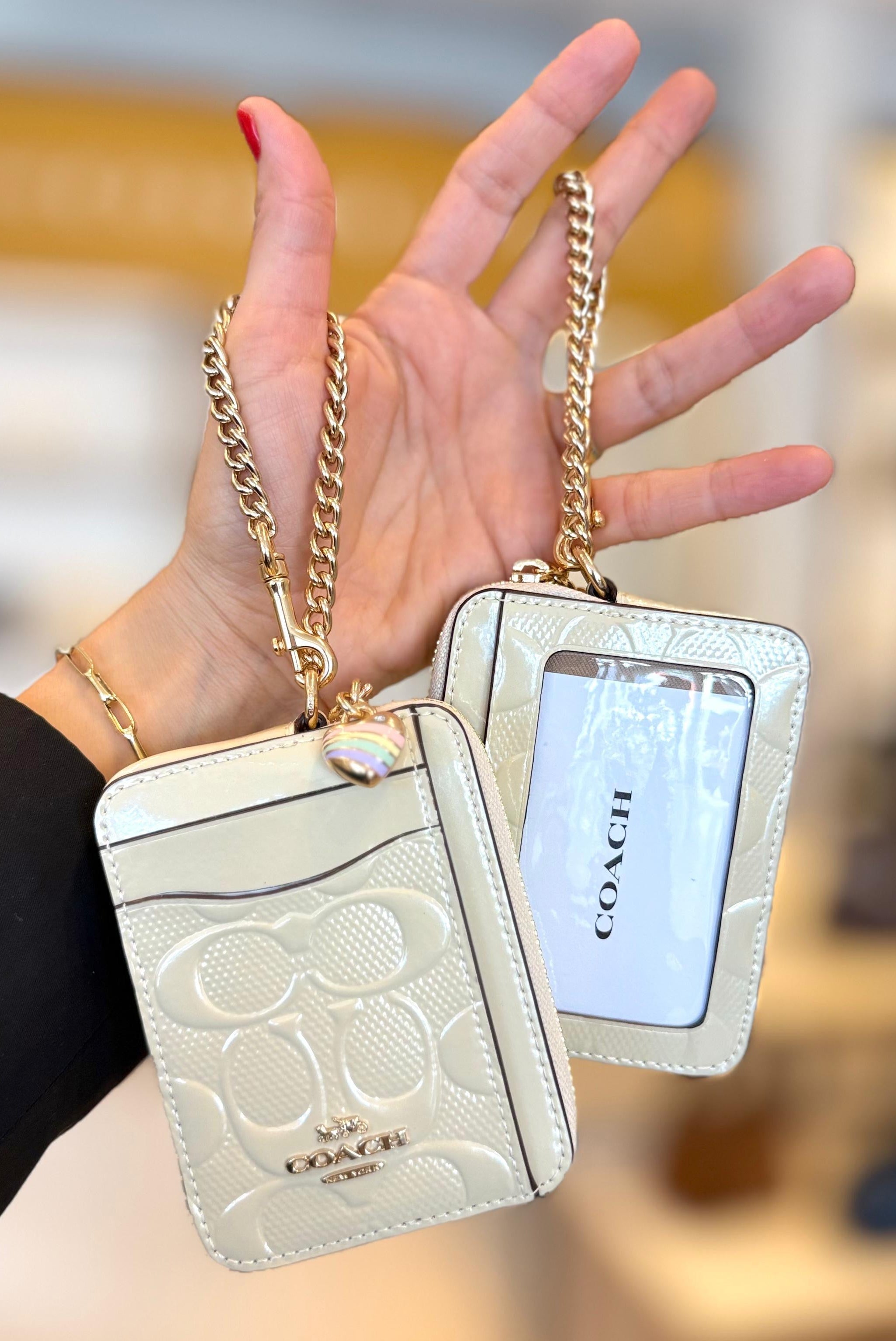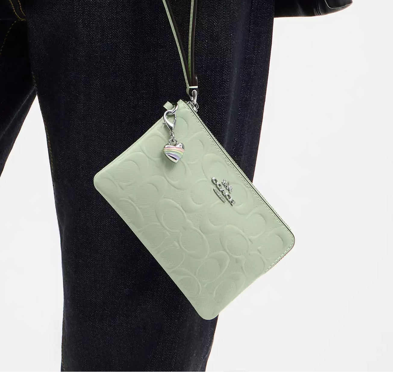 COACH Corner Zip Wristlet In Signature Leather With Heart Charm