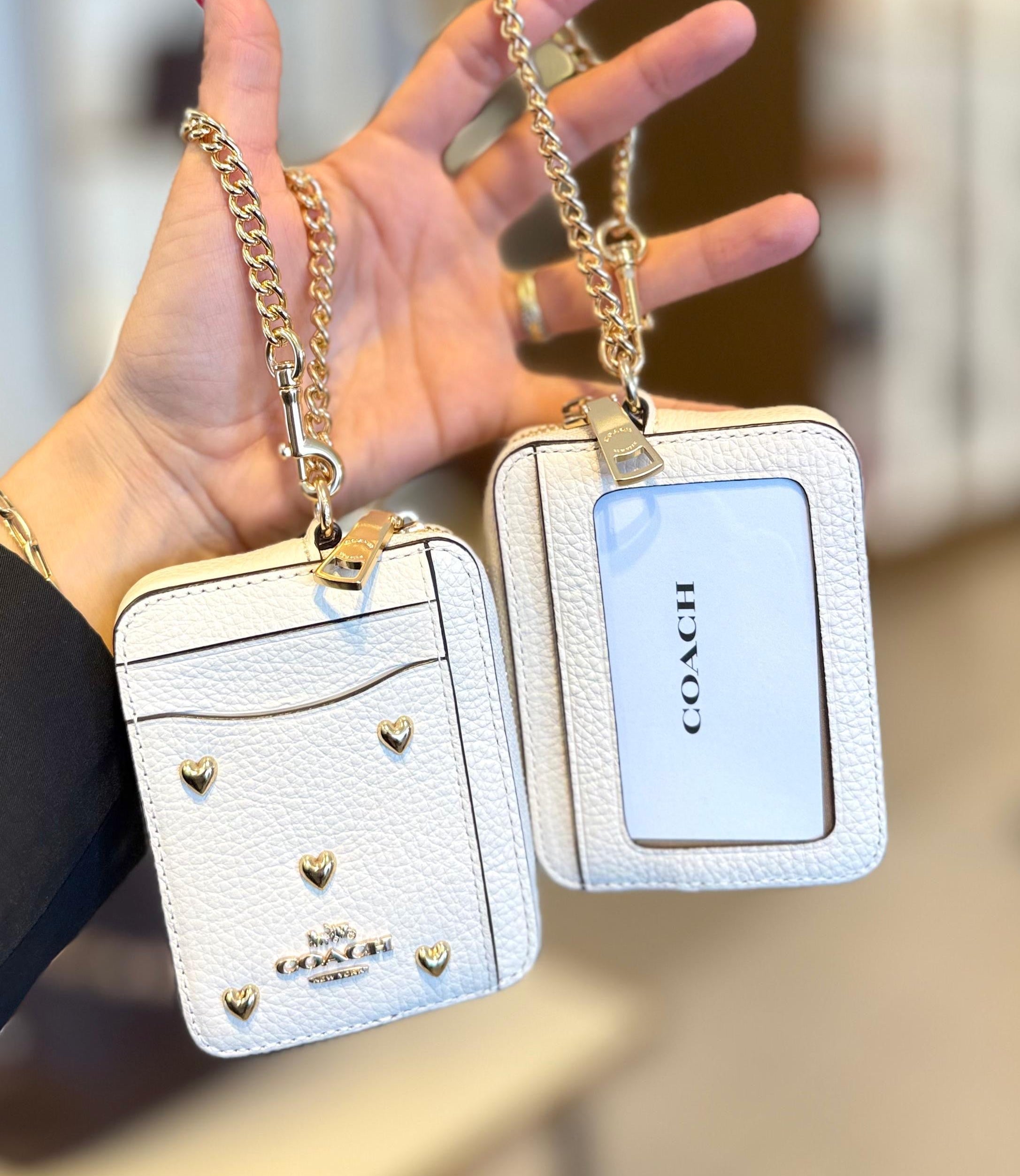 COACH Zip Card Case In Leather With Heart Rivets